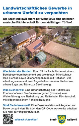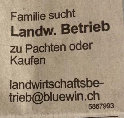 Hier können Gratisinserate rund um die Landwirtschaft aufgeschaltet werden: Ob für Kurse, landwirtschaftliche Mitarbeit, Praktikumsplätze oder Wohnen auf dem Bauernhof – in diesem Bereich können alle (auch ohne Abo) inserieren. Die Inserate sind öffentlich sichtbar und werden automatisch nach 6 Monaten gelöscht.
